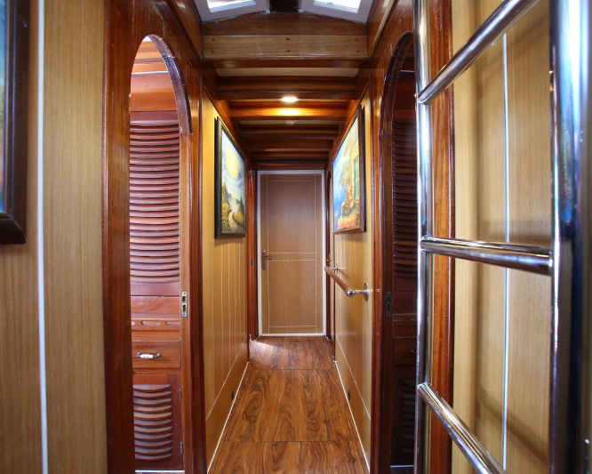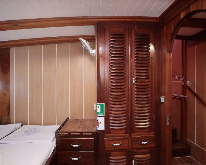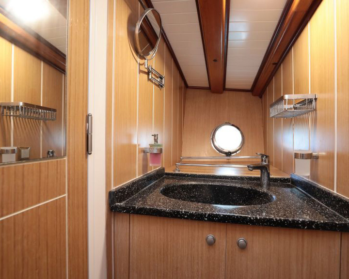 The vessel features eleven beautifully appointed cabins that accommodate up to 22 guests with an excellent mix of accommodation options including one master suite, four double cabins, and six twin cabins. Each cabin serves as a private sanctuary equipped with en-suite bathrooms featuring enclosed showers, WC, and modern fixtures, individually controlled air conditioning, and thoughtful amenities. The well-designed cabin layout ensures optimal comfort and privacy for all guests, with excellent ventilation, natural light, and stylish furnishings throughout.