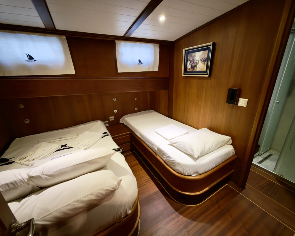 Cemre 4 can comfortably accommodate up to 18 guests in 9 beautifully appointed cabins with en-suite bathrooms.