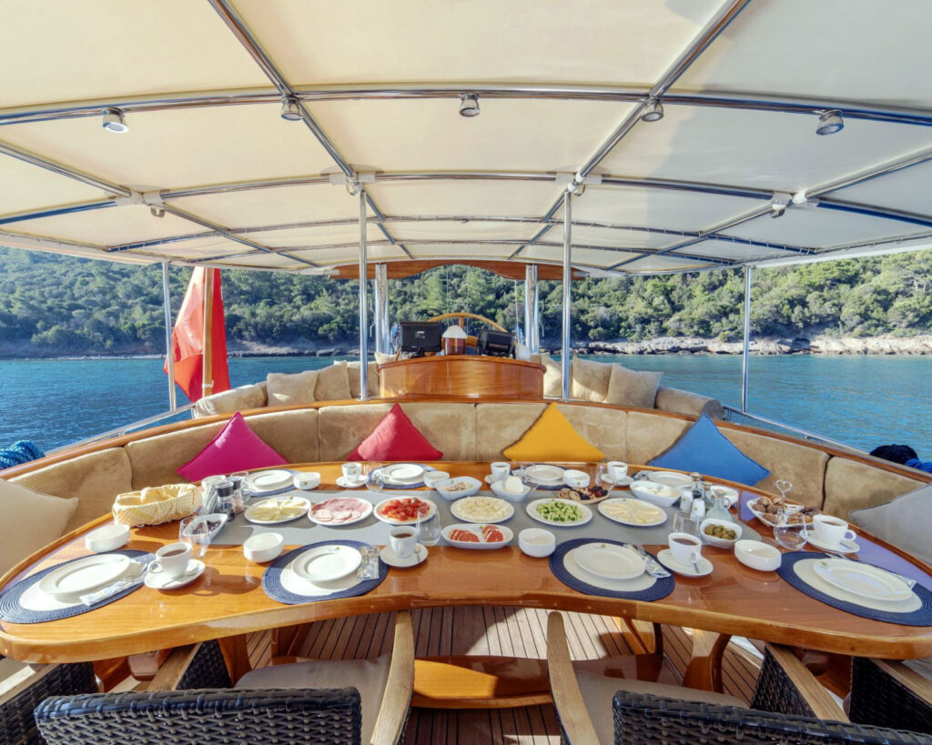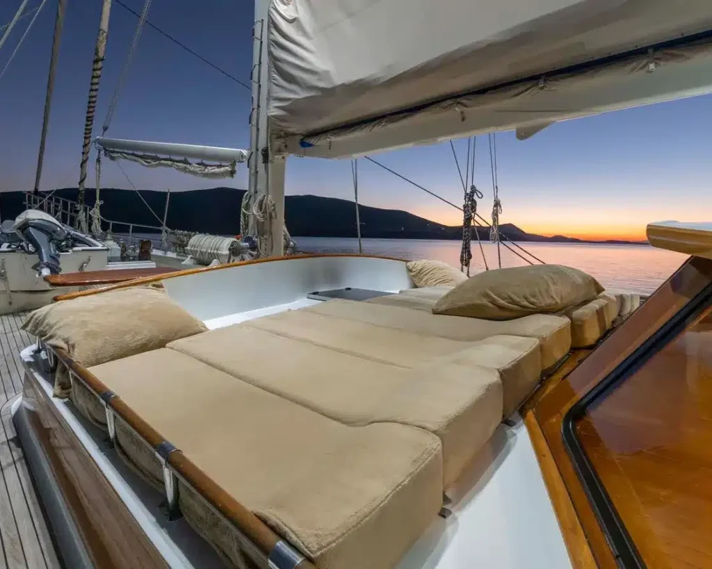 Traditional gulet stern design with relaxation area