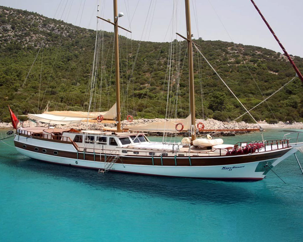 Gulet Kaya Güneri 2 represents quality craftsmanship and reliable comfort in traditional Turkish gulet design. Built in 2002 and maintained to excellent standards with regular full maintenance every year, this elegant 28.5-meter vessel showcases classic Turkish maritime construction with high-quality materials including oak frames, black pine superstructure, and beautiful teak decks that combine traditional aesthetics with modern comfort features.