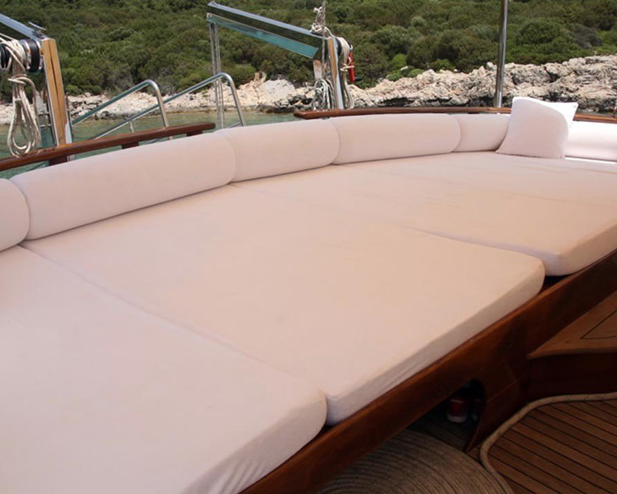 The vessel's exterior spaces are thoughtfully designed for maximum enjoyment and relaxation, featuring an expansive sun deck area equipped with premium sun mattresses for sunbathing and taking in the stunning sea views. The comfortable aft deck offers generous cushioned seating areas and outdoor dining facilities, perfect for alfresco meals under the Mediterranean sky, while large deck spaces provide ample room for all guests to relax, socialize, and enjoy the beautiful coastal scenery.