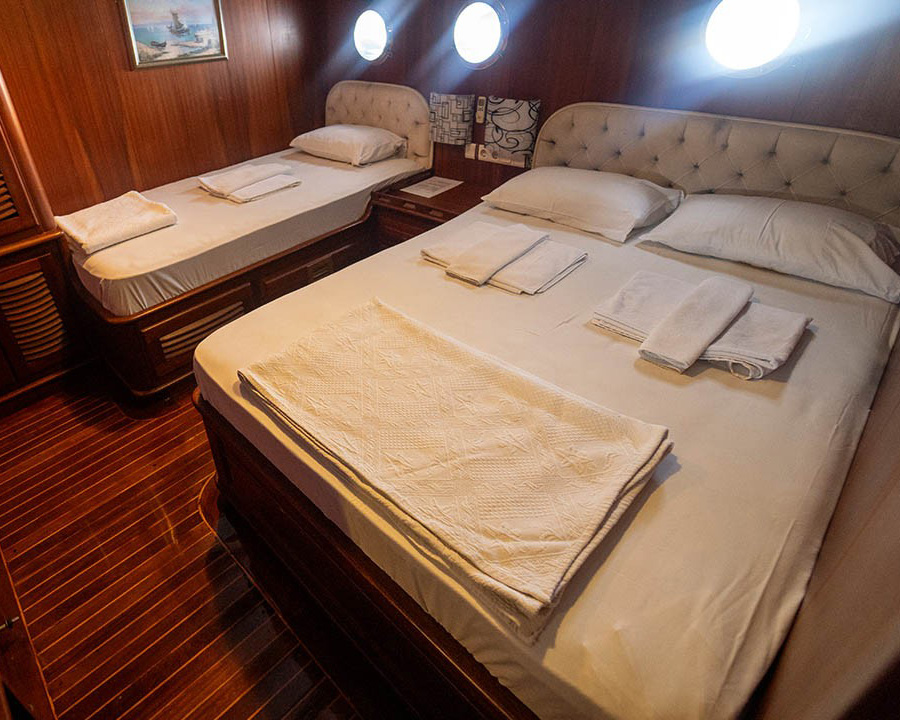 Prenses Lila can comfortably accommodate up to 16 guests in 8 beautifully appointed cabins with en-suite bathrooms.