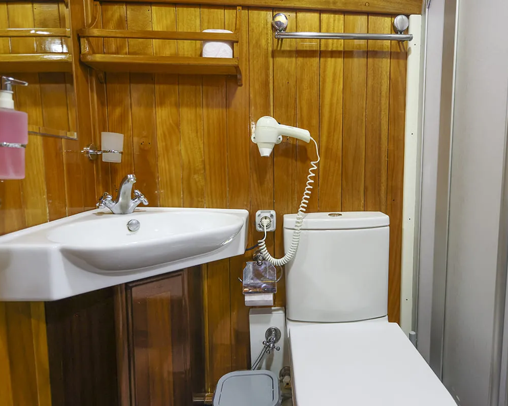 The vessel's accommodation is designed for intimate luxury, featuring six beautifully appointed cabins that provide comfortable lodging for up to 12 guests. The cabin configuration includes four spacious double cabins and two flexible twin cabins, each serving as a private retreat with en-suite bathroom facilities, individual climate control, and thoughtful amenities including hairdryers and quality linens. The consistent attention to detail throughout ensures every guest enjoys the same high standard of comfort.