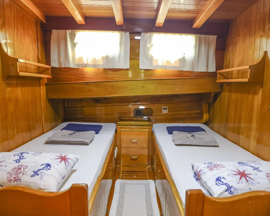 Under the experienced guidance of Captain Mahmut and his professional crew of four, Ya Selam offers expertly managed charters that showcase the best of Turkey's Mediterranean and Aegean coastlines. The captain's extensive local knowledge and commitment to safety, combined with the crew's dedication to hospitality, ensures each charter is both memorable and secure. With her proven seaworthiness and elegant accommodations, Ya Selam continues to set the standard for authentic Turkish gulet experiences.
