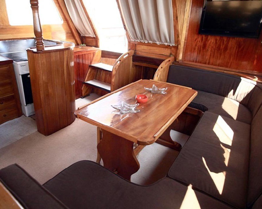 Das Schiff bietet Platz für bis zu 10 Gäste in fünf komfortablen Doppelkabinen, die jeweils über ein separates WC und eine Dusche für Privatsphäre und Komfort verfügen. Die Laram verfügt zwar über keine Klimaanlage, aber das traditionelle Design sorgt für eine ausgezeichnete natürliche Belüftung und bietet ein authentisches Segelerlebnis, das die Gäste mit dem Meer und dem mediterranen Klima verbindet.