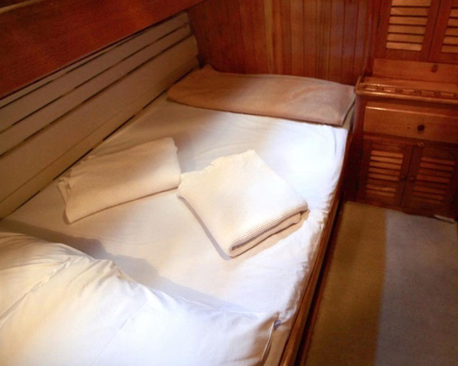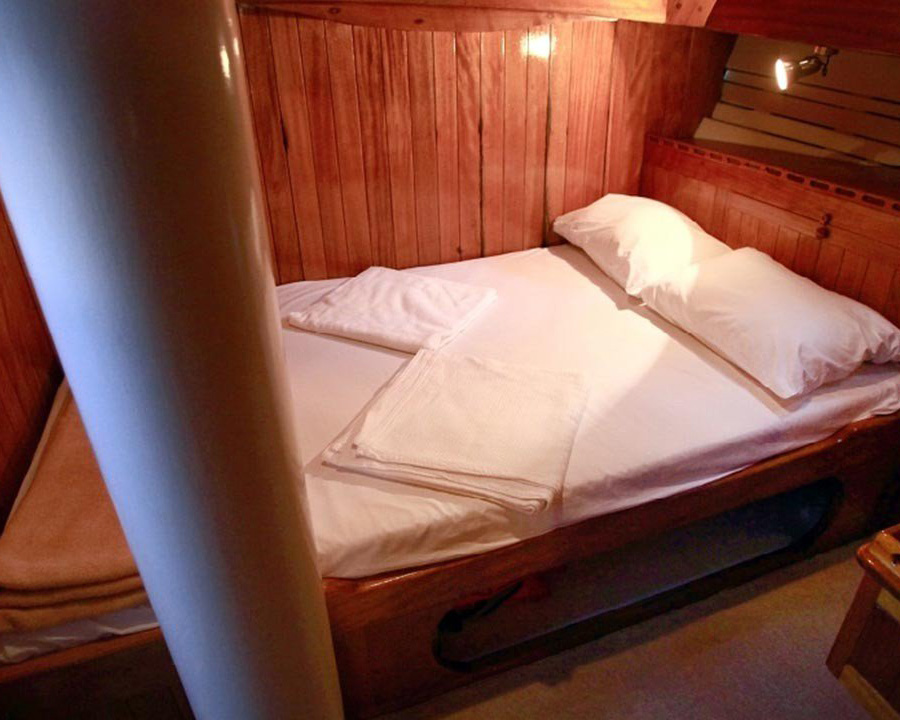 Die Laram bietet Platz für bis zu 10 Gäste in 5 Doppelkabinen. Jede Kabine verfügt über ein separates WC und eine Dusche, die allen Gästen Privatsphäre und Komfort bieten. Die intime Größe macht sie perfekt für Familien, enge Freunde oder kleine Gruppen, die ein gemütliches, persönliches Segelerlebnis statt eines überfüllten Charters suchen.