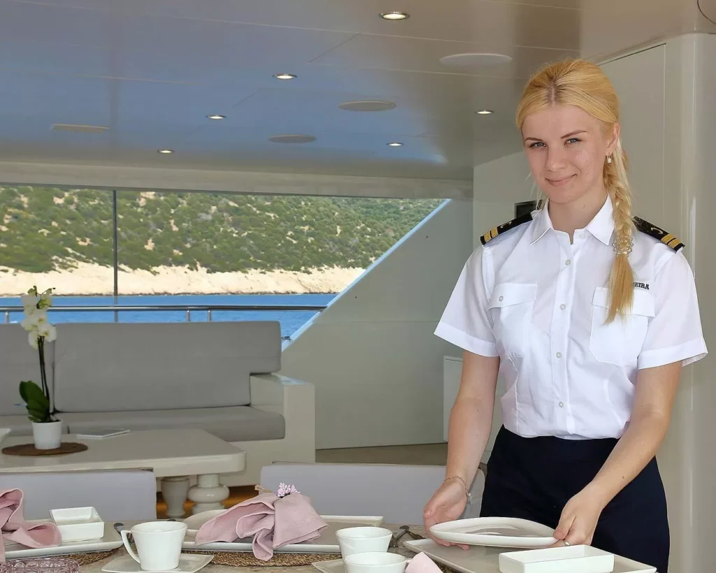 Die Meira verfügt über ein außergewöhnliches Verhältnis von Crewmitgliedern zu Gästen: 10 professionelle Crewmitglieder betreuen bis zu 12 Gäste und sorgen so für persönliche Aufmerksamkeit und Fünf-Sterne-Service. Zur Crew gehören ein erfahrener Kapitän, ein professioneller Koch, spezialisierte Spa-Therapeuten, Hauswirtschaftspersonal, Decksleute und Servicepersonal, die alle für die Gastfreundschaft auf Superyacht-Niveau geschult sind.