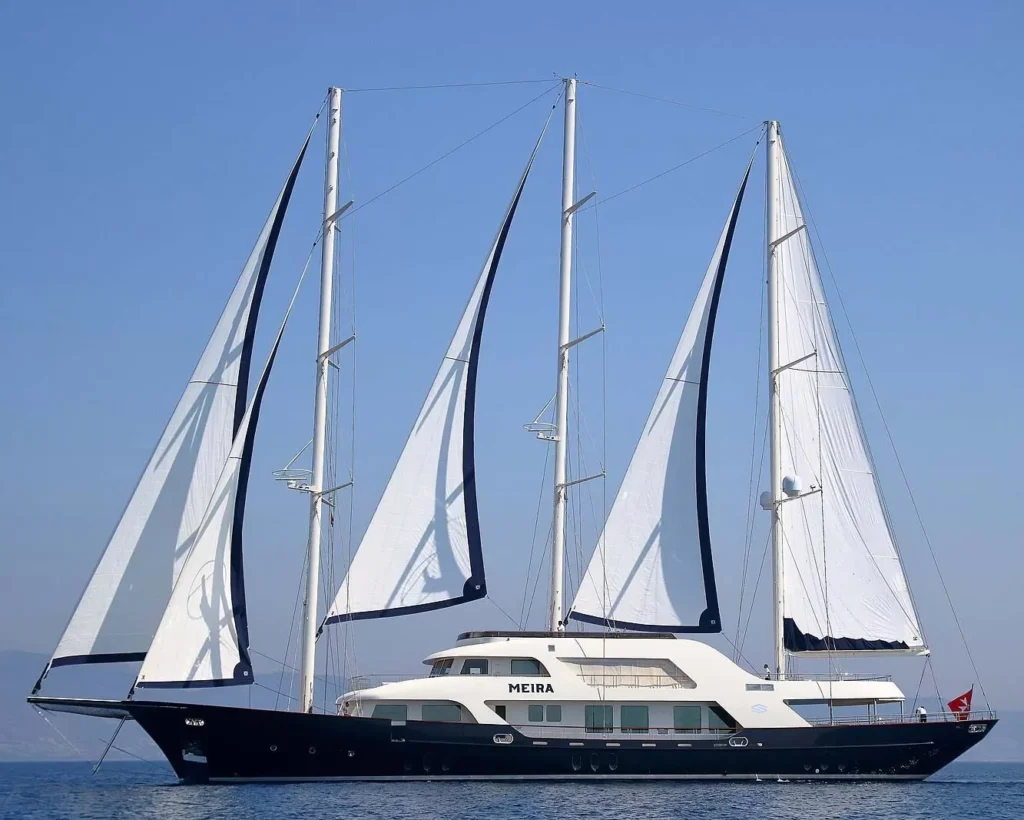 Die Meira zählt zu den besten Charteryachten der Welt, wurde als Finalistin bei den Boat International Design & Innovation Awards 2019 ausgezeichnet und für die International Superyacht Society Awards nominiert. Mit einer Länge von 55 Metern, einer professionellen 10-köpfigen Crew und außergewöhnlichen Annehmlichkeiten konkurriert sie direkt mit den exklusivsten Superyachten im Mittelmeer und bietet den einzigartigen Charme des türkischen Gulet-Erbes in Kombination mit modernem Luxus.