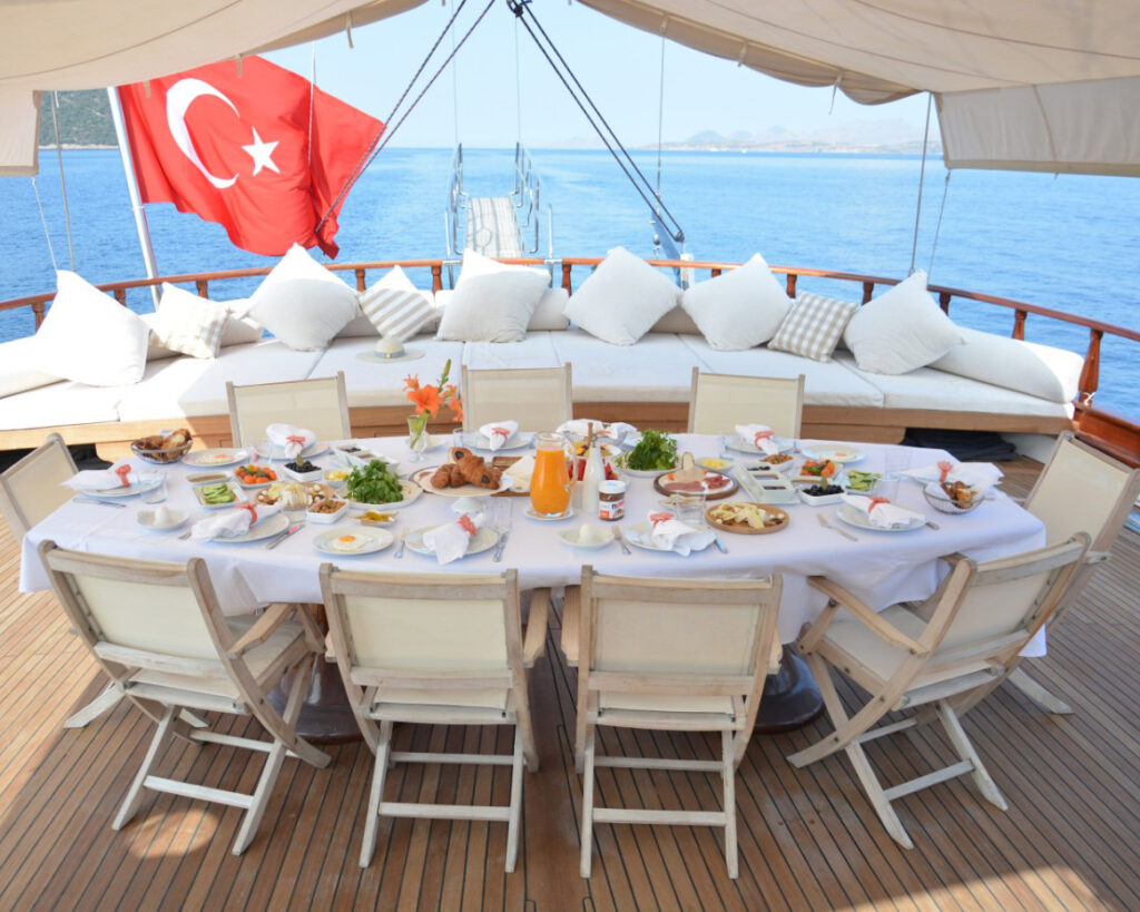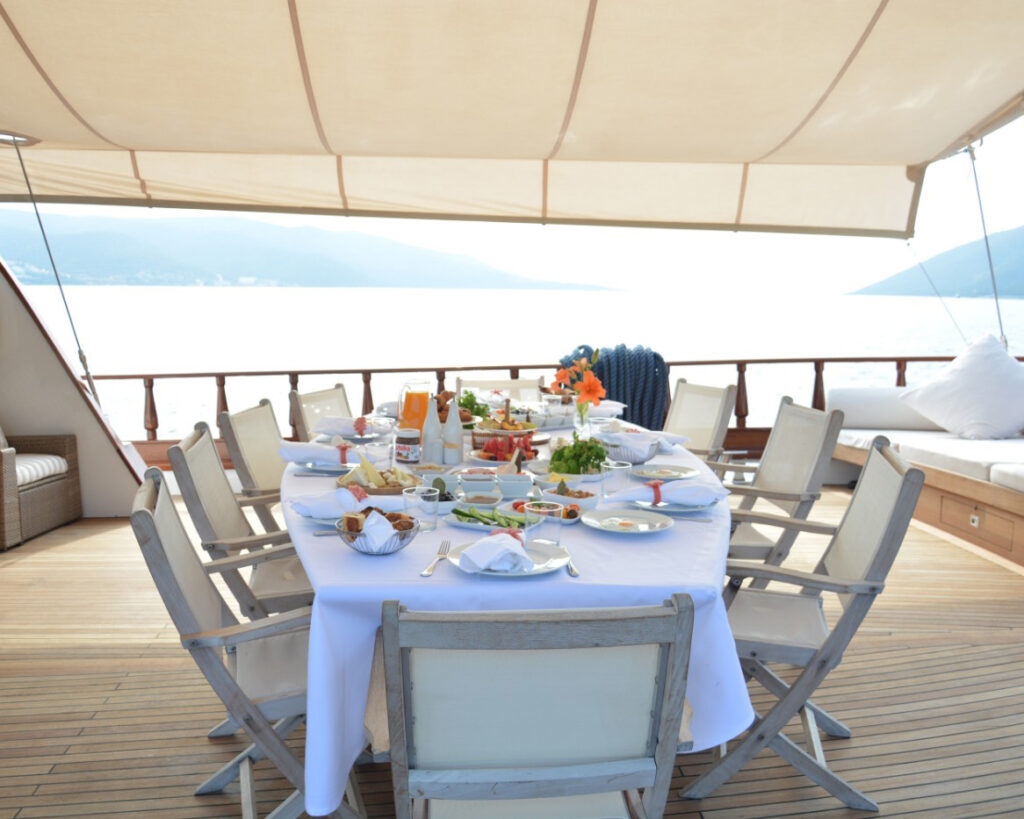 Mit einer professionellen Crew von sechs Personen, darunter ein erfahrener Kapitän, ein erfahrener Koch, ein qualifizierter Ingenieur, engagierte Matrosen und eine aufmerksame Hostess, garantiert Papa Joe einen tadellosen Service und ständige Liebe zum Detail während Ihres gesamten Charteraufenthalts. Die separaten Unterkünfte der Crew gewährleisten die vollständige Privatsphäre der Gäste, während ihre umfassende Erfahrung in den Gewässern des Mittelmeers, ihre Ortskenntnisse und ihr unermüdliches Engagement für Gastfreundschaft ein unvergessliches Blaukreuzfahrt-Erlebnis entlang der atemberaubenden Küsten der Türkei, der bezaubernden griechischen Inseln und der atemberaubenden Küsten Kroatiens und Montenegros garantieren.