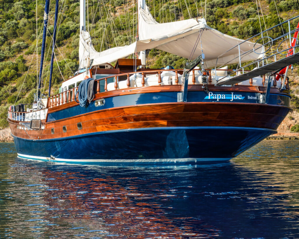 Die Gulet Papa Joe ist ein Zeugnis außergewöhnlicher Handwerkskunst im Yachtbau und ein einzigartiges Schiff, das die klassischen Linien einer traditionellen türkischen Gulet mit ultramodernem Design und zeitgemäßen Annehmlichkeiten verbindet. Diese prächtige 34 Meter lange Luxus-Gulet wurde 2007 von der renommierten Werft Mastori Yachts in Bodrum gebaut und 2018 umfassend renoviert. Sie verfügt über einen innovativen Stahlrumpf, der für überragende Stabilität und Komfort sorgt und gleichzeitig die elegante Ästhetik des traditionellen Gulet-Designs aus Holz beibehält.