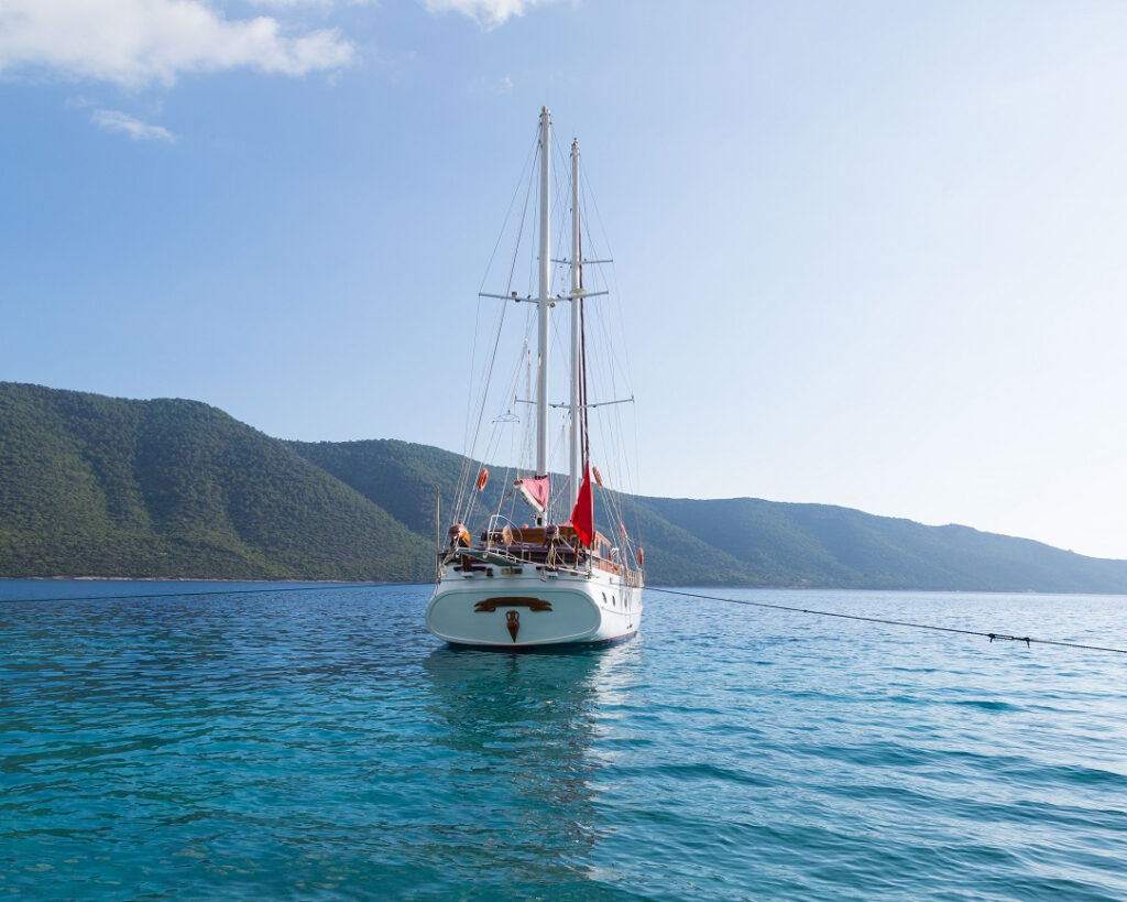 Die Gulet Primadonna hat ihren Heimathafen in Bodrum in der Türkei, einem der beliebtesten Ausgangspunkte für Blaue Kreuzfahrten entlang der atemberaubenden türkischen Küste und zu den nahe gelegenen griechischen Inseln.