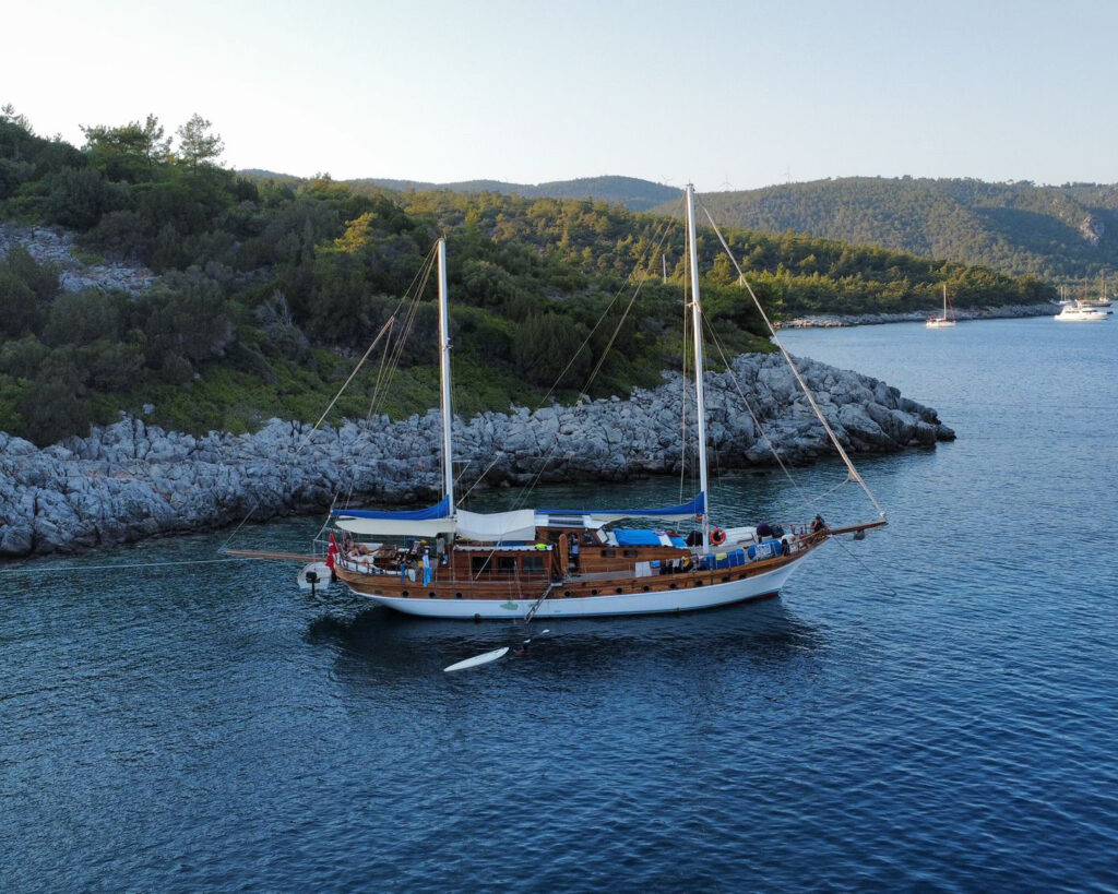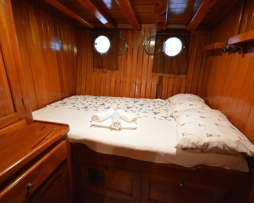 Das Schiff verfügt über sechs komfortable Kabinen, die Platz für bis zu 12 Gäste bieten und praktische und gemütliche Unterkünfte für Familien, Freunde oder gemischte Gruppen bieten, die wertorientierten Luxus suchen. Jede Kabine ist mit Klimaanlage, eigenem Bad und allen notwendigen Annehmlichkeiten ausgestattet, um einen komfortablen Aufenthalt zu gewährleisten, während Sie die wunderschönen Buchten und kleinen Strände der türkischen Riviera und der nahe gelegenen Reiseziele erkunden.