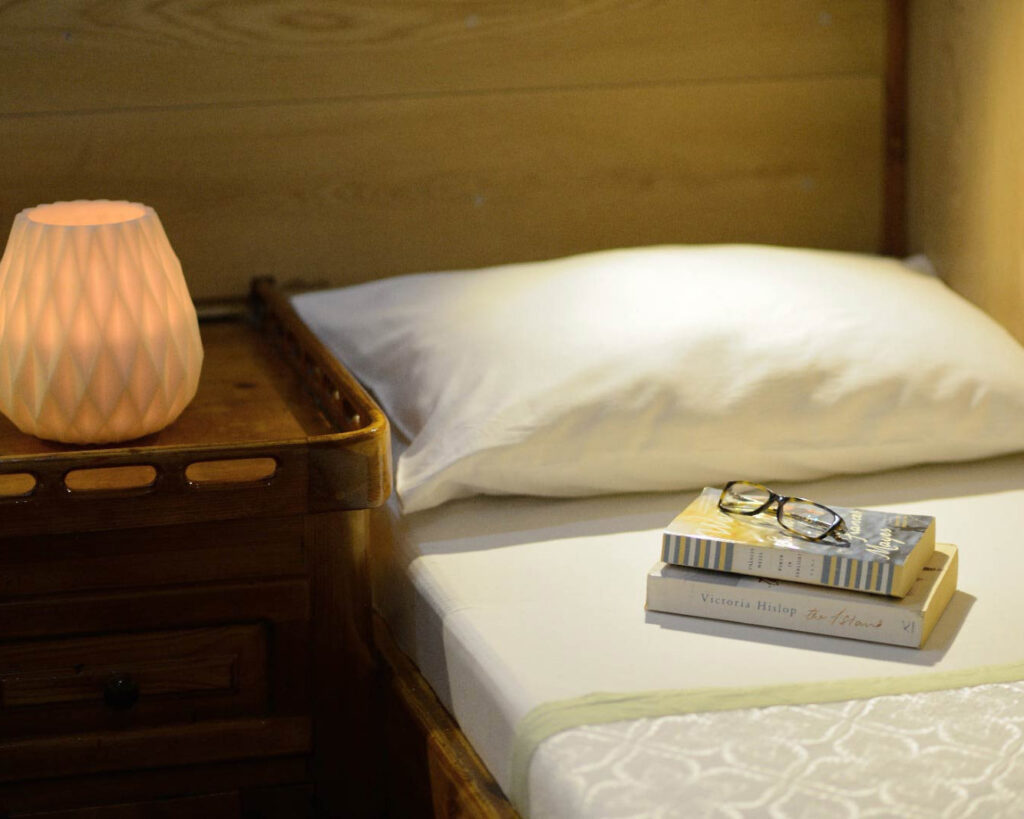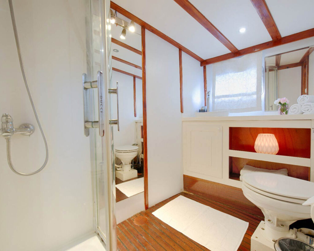 Teknenin konaklaması, iyi donanımlı sekiz kabin boyunca 16 misafir kapasitesinde konfor ve mahremiyeti maksimize etmek için düşünceli bir şekilde tasarlanmış. Kabin konfigürasyonu beş geniş çift kişilik kabin ve üç rahat ikiz kabin içerirken her biri kendi depolama alanı, doğal ışık için pencere ve lavabo, duş ve lavabo bulunan tam donanımlı özel banyo sunuyor. Her kabindeki bireysel klima daha sıcak Akdeniz günlerinde konfor garanti ederken geleneksel mobilyalar Türk denizcilik mirasının otantik karakterini yansıtıyor.