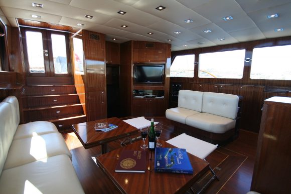 Didi'nin iç tasarımı her yerde zarif maun ahşabı sergiler ve rafine lüks ile sıcaklık atmosferi yaratır. Ferah salon, klasik ahşap tarzını çağdaş konforla birleştirerek dinlenme için rahat oturma alanları ve hava koşulları gerektirdiğinde iç mekan yemek olanağı sunar. Salon misafir keyfi için geniş ekran TV eğlencesi ve müzik sistemleri sunar.