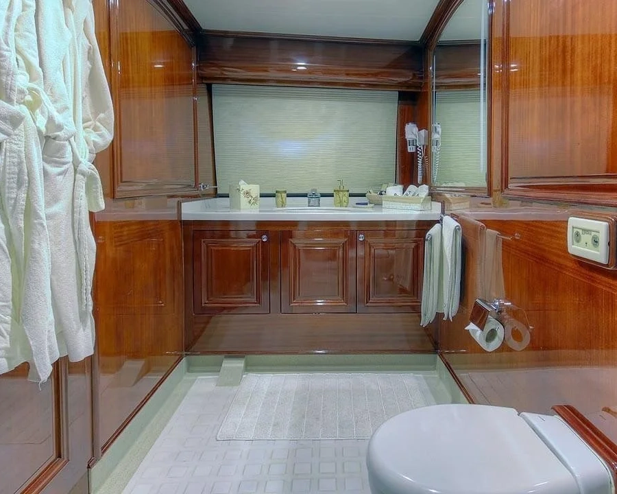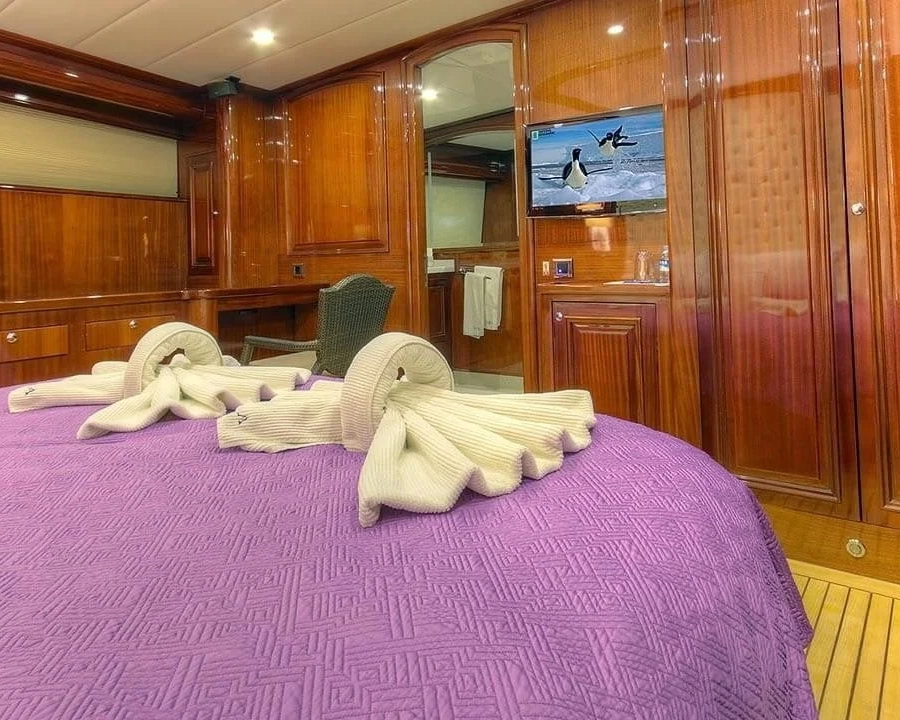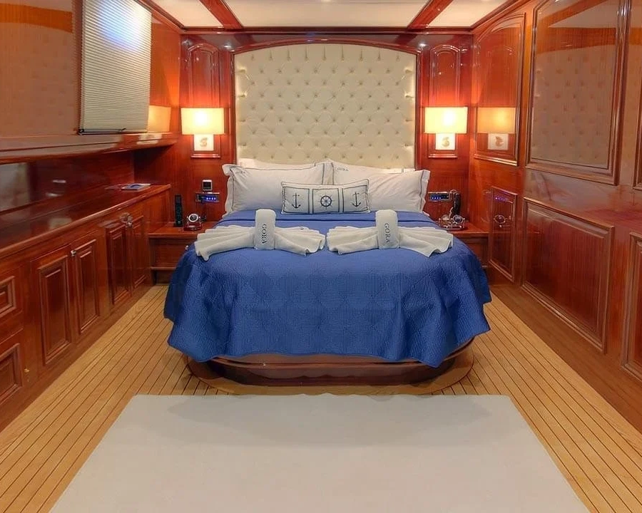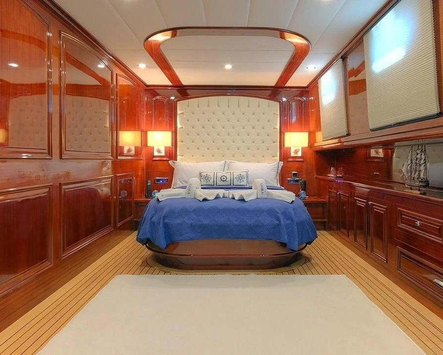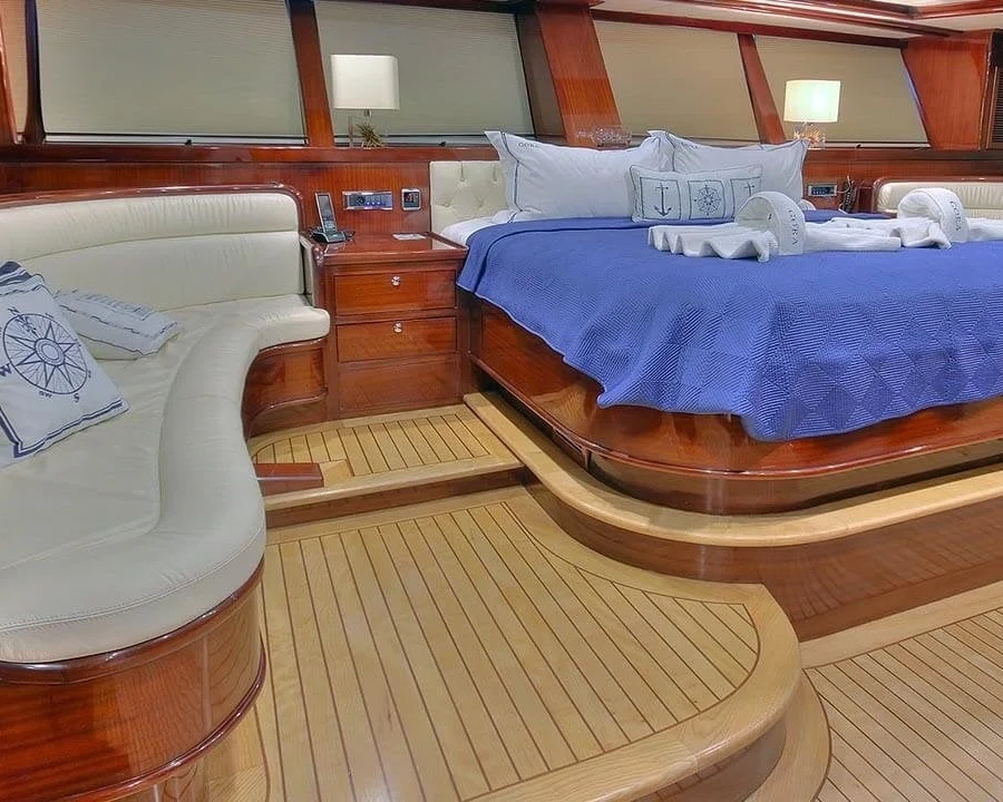 Bu lüks yat, titizlikle tasarlanmış beş lüks kabinde 10-12 misafir kapasitesine sahip olup üç master kabin ve iki VIP kabin ile eşsiz esneklik sağlıyor. Master kabinler, geniş masaları, ekstra oturma alanları ve konfor ile mahremiyeti garanti eden sofistike tasarım detayları ile baş ve kıç bölümlerinde premium konumlandırma bulunan king size yataklar içeriyor. VIP kabinler gerektiğinde ek yataklar alabilir ve teknenin özel atmosferini korurken büyük gruplar için rahat düzenlemelere olanak sağlar.