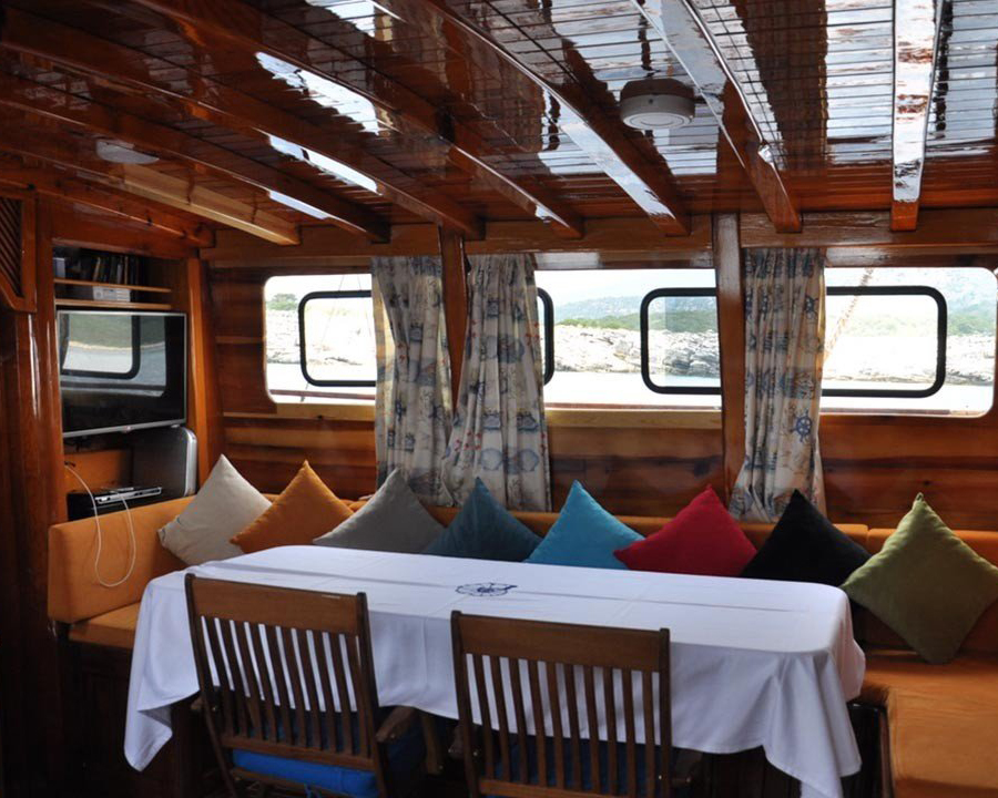Özel Gulet Karyalı, Türk denizcilik geleneğinin özgün ruhunu temsil ederek, köklü işçiliği modern konfor özellikleriyle birleştirmektedir. 2023 yılında yenilenmiş ve titizlikle bakımı yapılmış olan bu 27 metre uzunluğundaki samimi gulet, Türkiye'nin muhteşem kıyıları boyunca kişiselleştirilmiş mavi yolculuk deneyimi arayan gruplar için mükemmel bir gemidir.